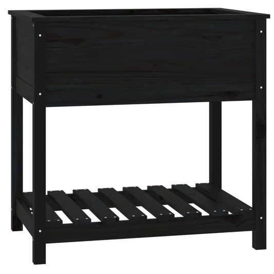 Plantenbak met schap 82,5x54x81 cm massief grenenhout zwart