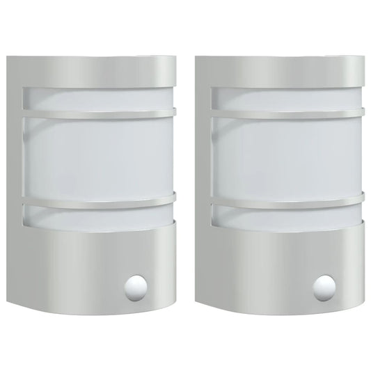 Buitenwandlampen 2 st met sensors roestvrij staal zilverkleurig