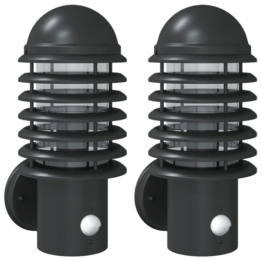 Buitenwandlampen 2 st met sensors roestvrijstaal zwart
