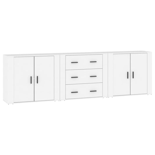 Dressoirs 3 st bewerkt hout wit
