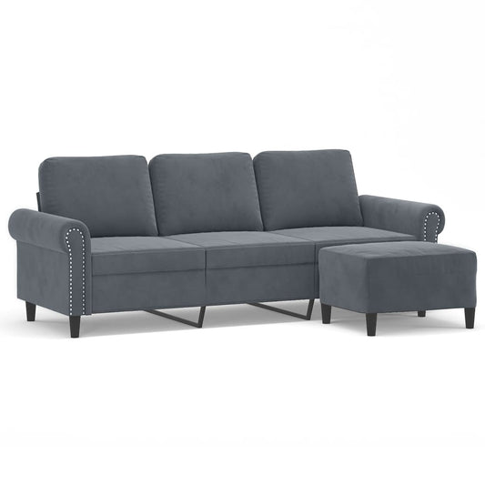 Driezitsbank met voetenbank 180 cm fluweel donkergrijs