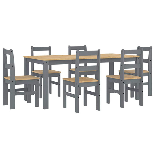 7-delige Eetset Panama massief grenenhout grijs