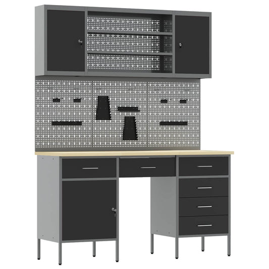 Werk kast met lade 7 pcs Zwart Engineered hout en staal
