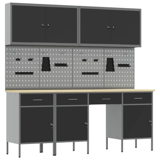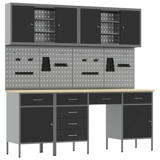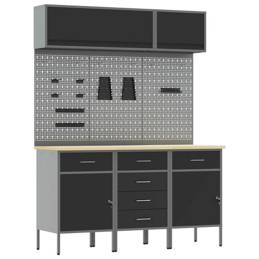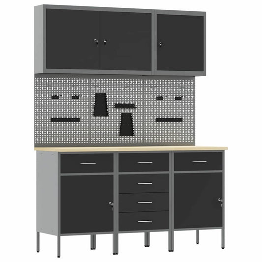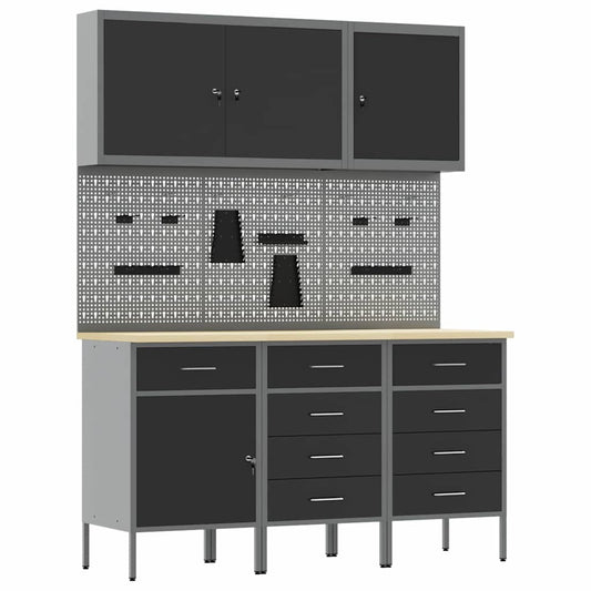Werkkast set met lade met opslag met slot 8 pcs Zwart