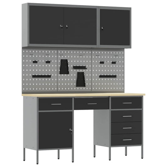 Werk kast met lade 8 pcs Zwart Engineered hout en staal
