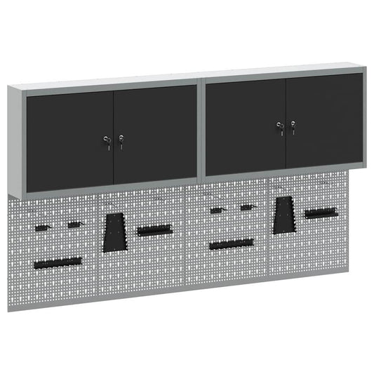 Gereedschapskast set met plank 4 pcs Zwart Gepoedercoat staal