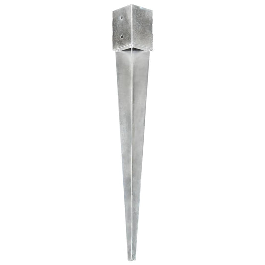 Grondpinnen 2 st 9x9x90 cm gegalvaniseerd staal zilverkleurig