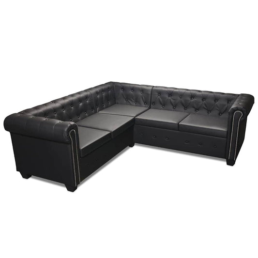 Hoekbank 5-zits Chesterfield-stijl kunstleer zwart