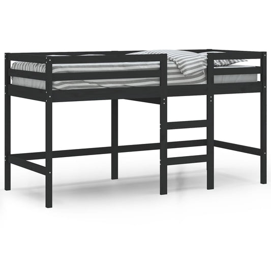 Kinderhoogslaper met ladder 80x200 cm massief grenenhout zwart