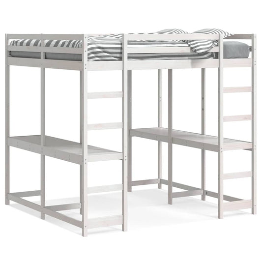 Hoogslaper met bureau en ladder grenenhout wit 140x200 cm