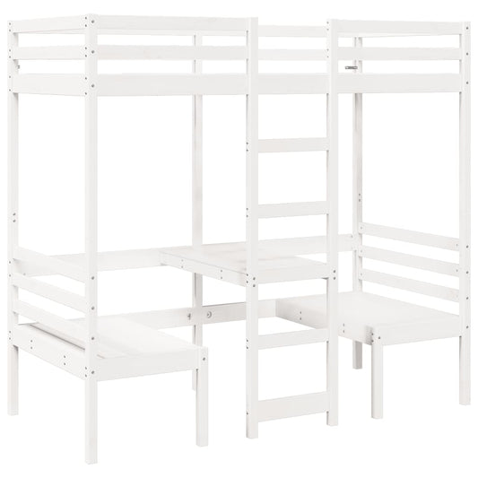 Hoogslaper met bureau en stoelen grenenhout wit 75x190 cm