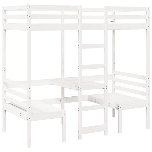 Hoogslaper met bureau en stoelen grenenhout wit 90x190 cm