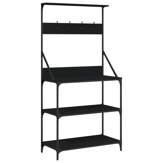Bakkersrek met haken 4-laags bewerkt hout zwart