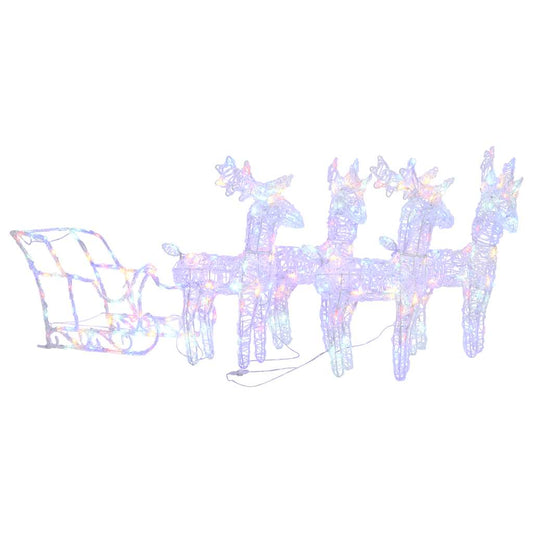 Kerstdecoratie rendieren en slee 260x21x87 cm acryl meerkleurig