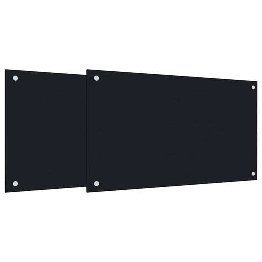 Spatschermen keuken 2 st 70x50 cm gehard glas zwart