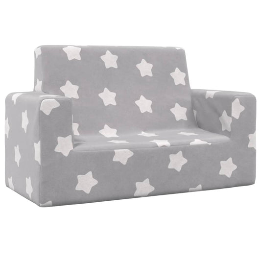Kinderbank 2-zits met sterren zacht pluche lichtgrijs