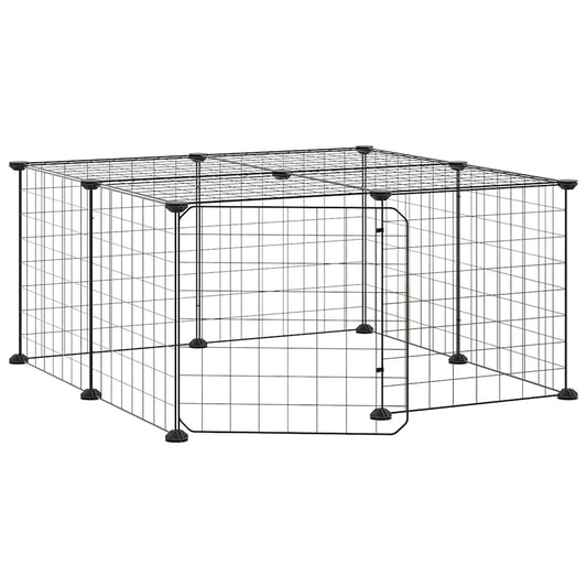 Huisdierenkooi met deur 8 panelen 35x35 cm staal zwart