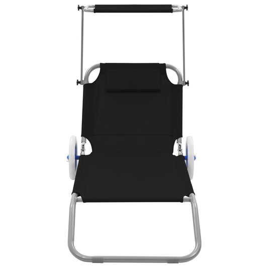 Ligbed met luifel en wieltjes inklapbaar staal zwart