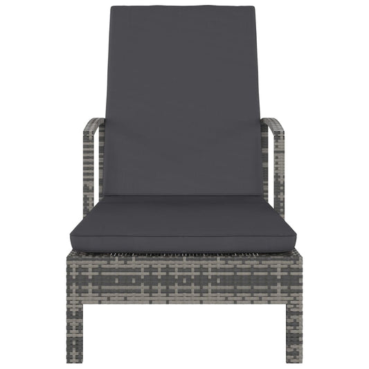 Ligbed met kussen poly rattan grijs
