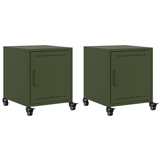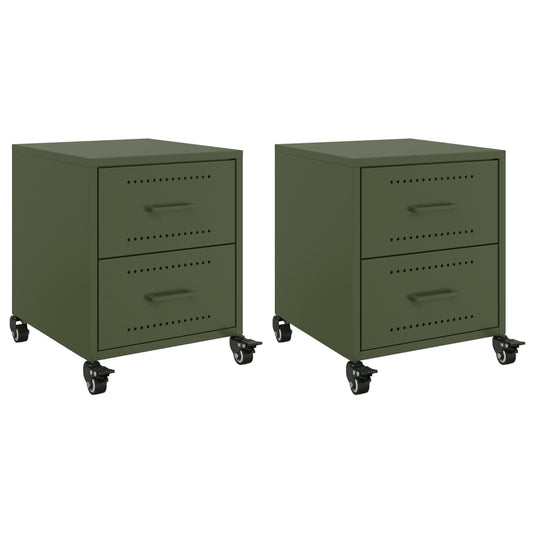 Nachtkastjes 2 st 36x39x43,5 cm staal olijfgroen