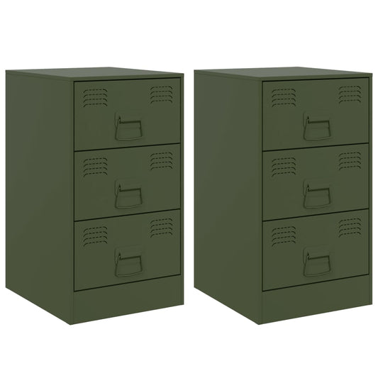 Nachtkastjes 2 st 34,5x39x62 cm staal olijfgroen