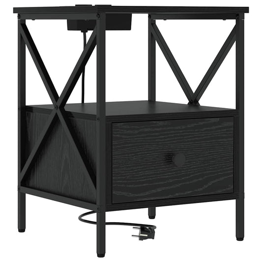 Nachtkastje Zwart Eiken 41,5 x 26 x 60,5 cm Bewerkt hout
