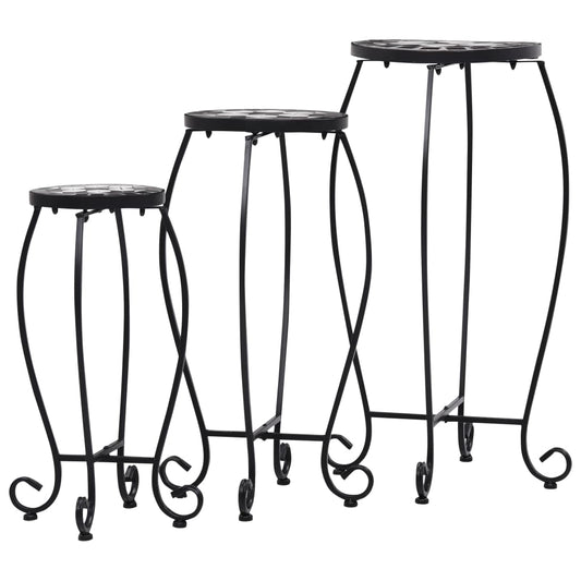 Bijzettafels mozaïek 3 st keramiek zwart en wit