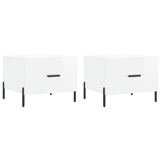 Salontafels 2 st 50x50x40 cm bewerkt hout hoogglans wit