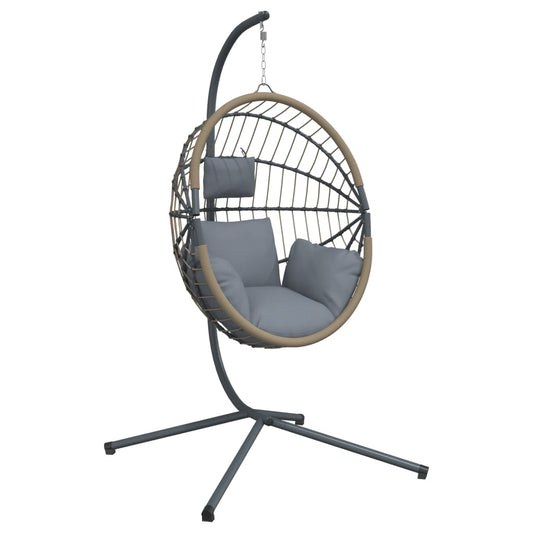 Hangende Eivormige Stoel met Kussen Taupe Poly Rattan & Staal