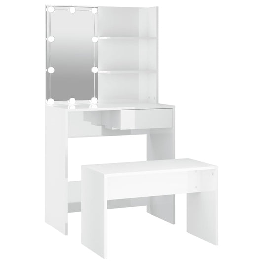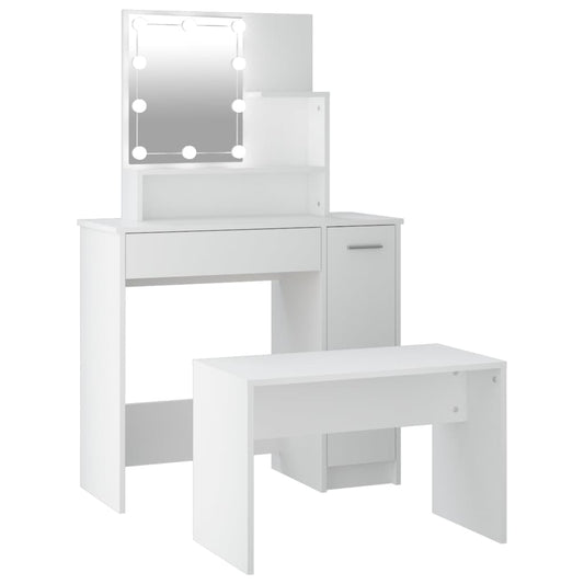 Kaptafel met kastje en LED's bewerkt hout hoogglans wit