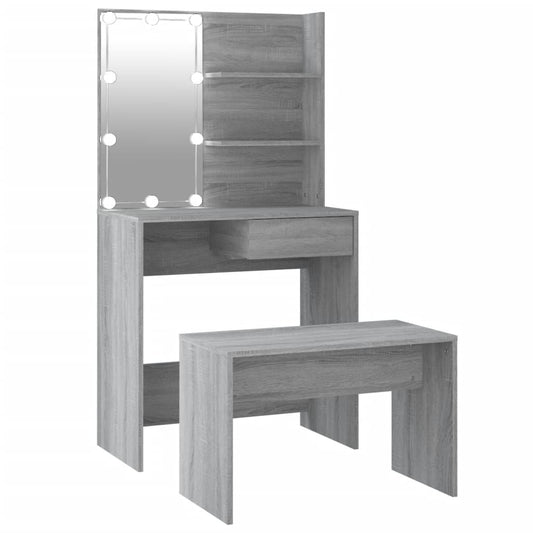 Kaptafelset met LED's bewerkt hout grijs sonoma