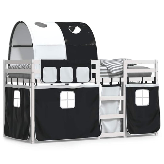 Stapelbed met gordijnen 90x190 cm grenenhout wit en zwart