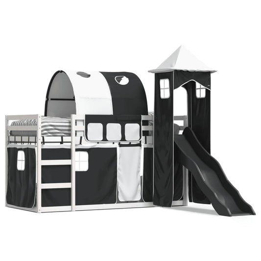 Stapelbed met glijbaan en gordijnen wit en zwart 90x200 cm