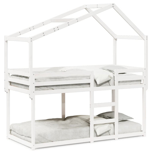 Stapelbed met dak massief grenenhout wit 90x200 cm