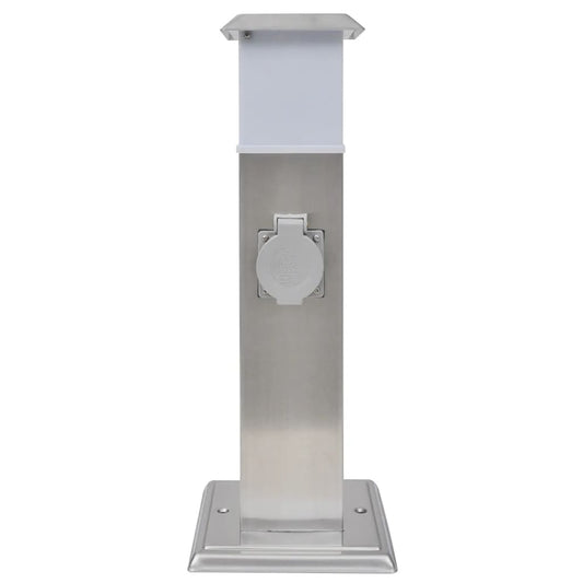 Buitenstopcontact op zuil met lamp (roestvrij staal)