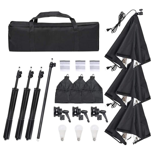 Fotostudioset met verlichtingsset, achtergrond en reflector