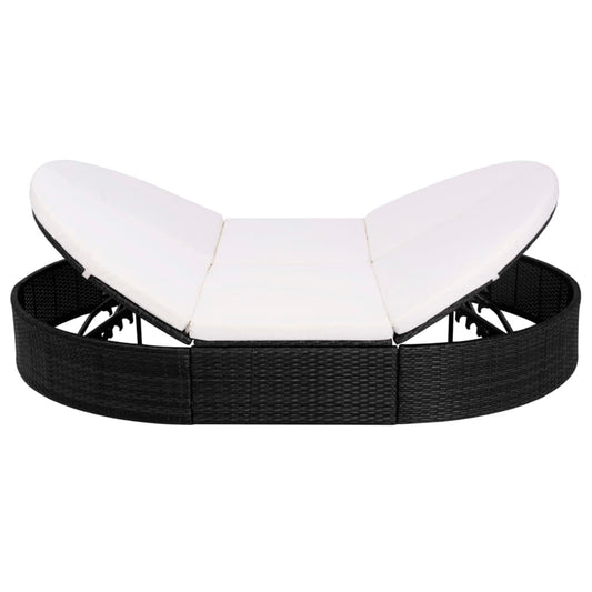 Loungebed met kussen poly rattan zwart