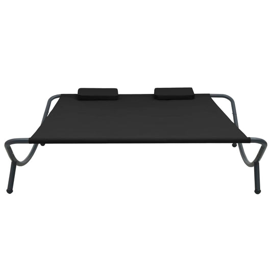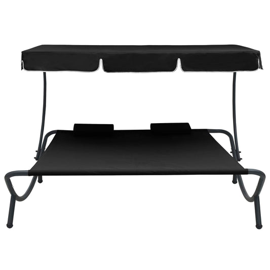 Loungebed met luifel en kussens zwart