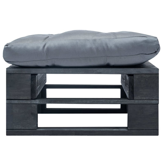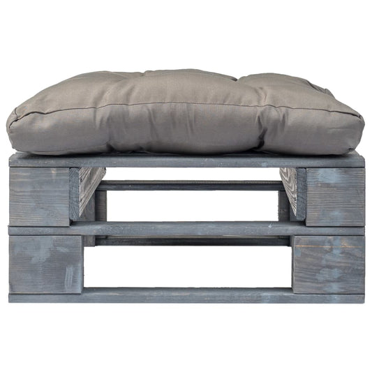 Tuinpoef met grijs kussen pallet hout honingbruin