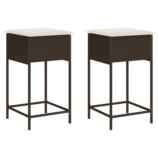 Tuinbarkrukken 2 st met kussens poly rattan bruin