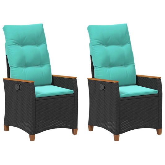 Tuinkrukken 2 st met kussens poly rattan zwart