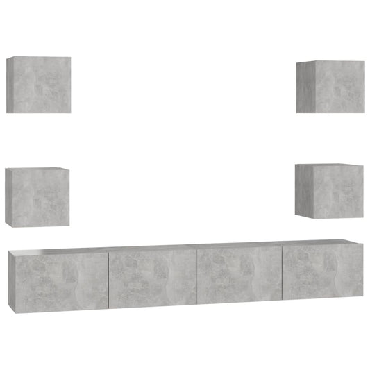6-delige Tv-meubelset bewerkt hout betongrijs