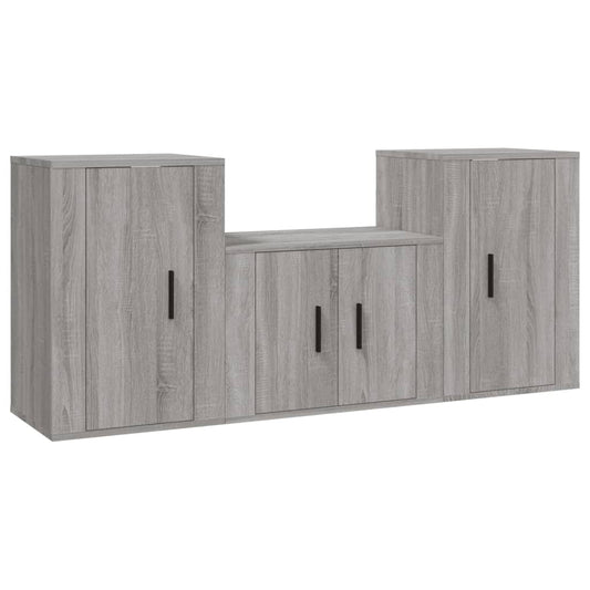 3-delige Tv-meubelset bewerkt hout grijs sonoma eikenkleurig