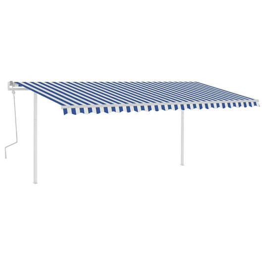Luifel handmatig uittrekbaar met palen 4,5x3,5 m blauw en wit
