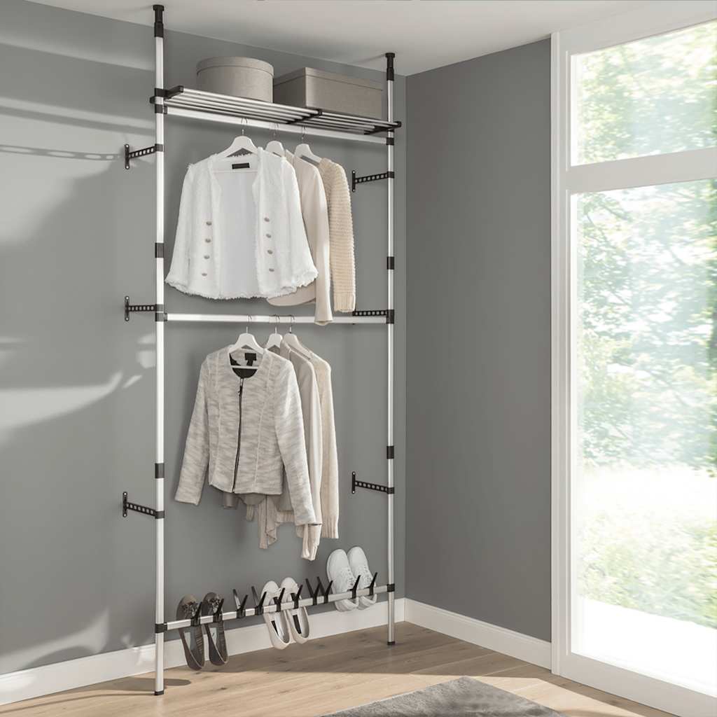 Kledingkastsysteem met stangen en schap telescopisch aluminium