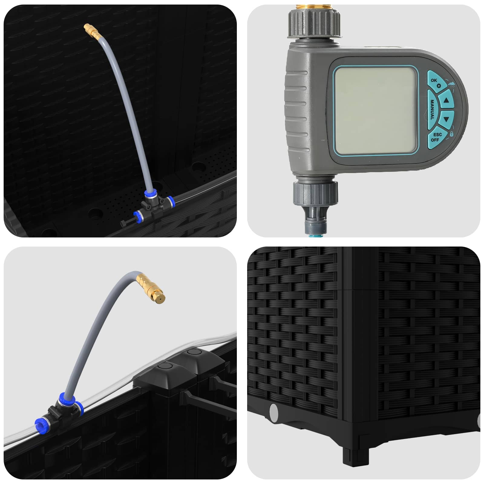 - Irrigatie gereed: Deze planter is ontworpen om je planten gezond te houden door goed waterbeheer. Ideaal voor als het droog is of als je een tijdje weg bent, zodat je planten altijd genoeg water krijgen.